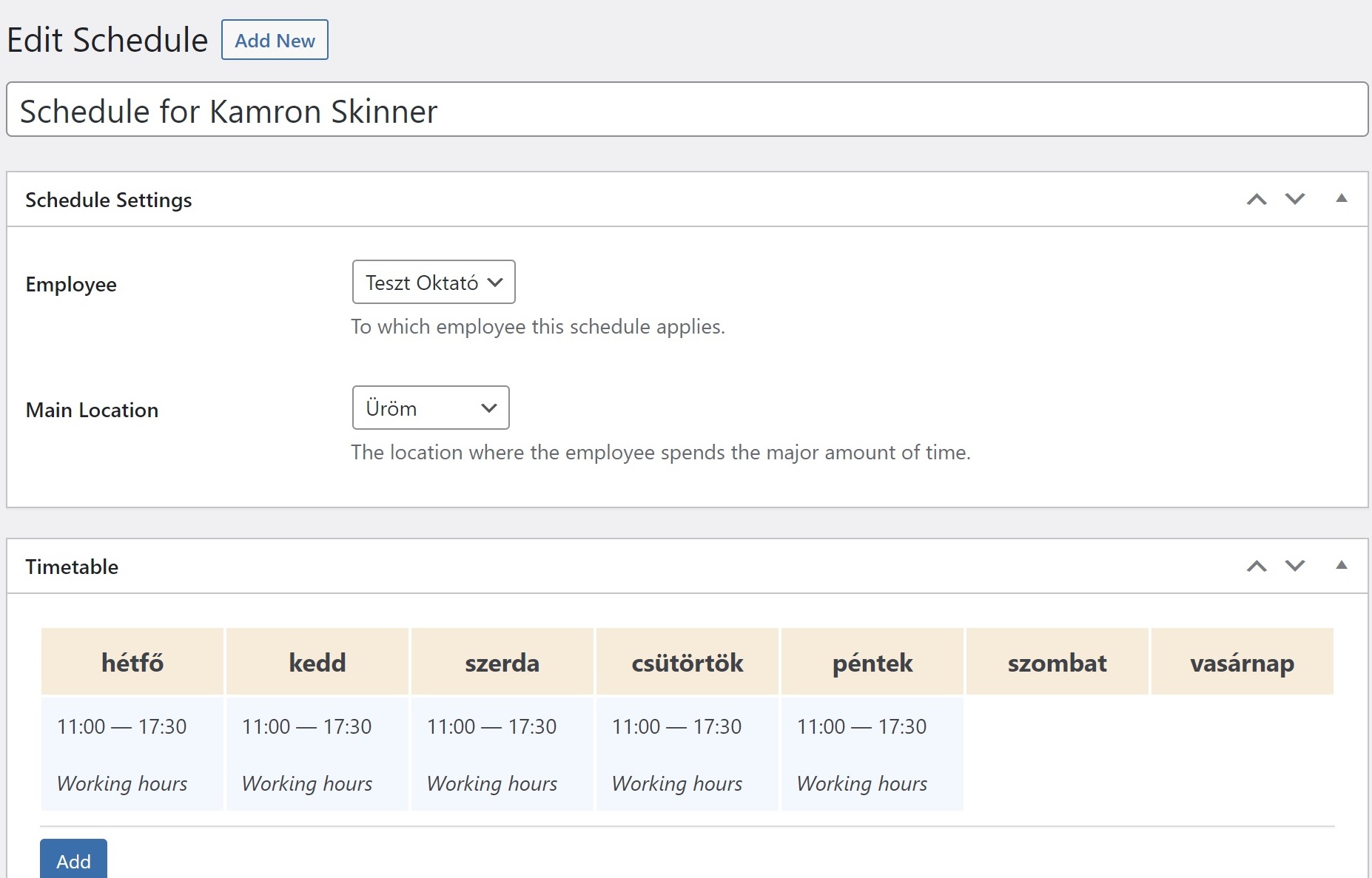 - Beállítható, hogy a tanár melyik időpontokban elérhető