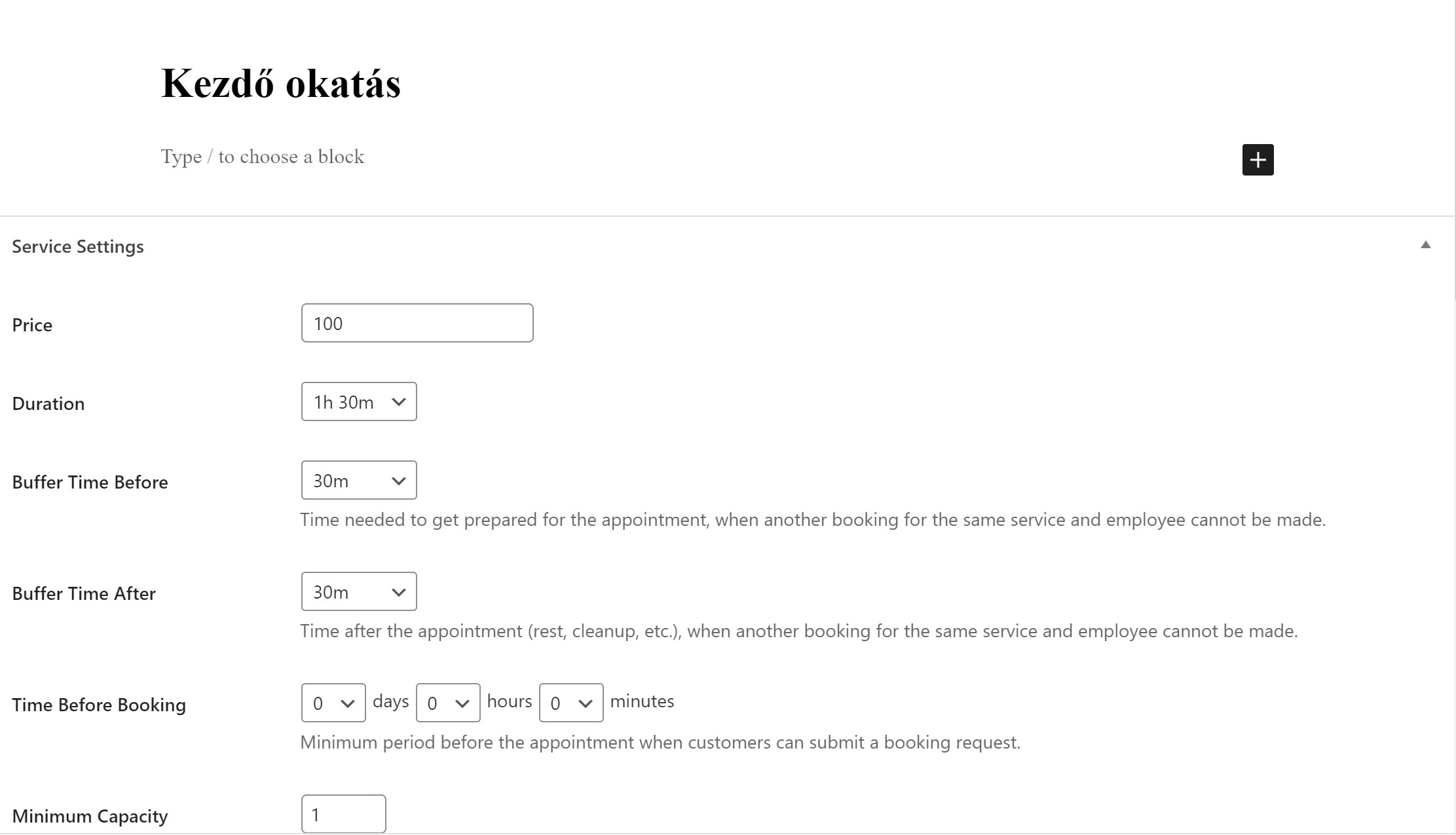 - Az oktatás időtartalmán kívül beállítható, hogy előtt/utána mennyi időt hagyjon ki